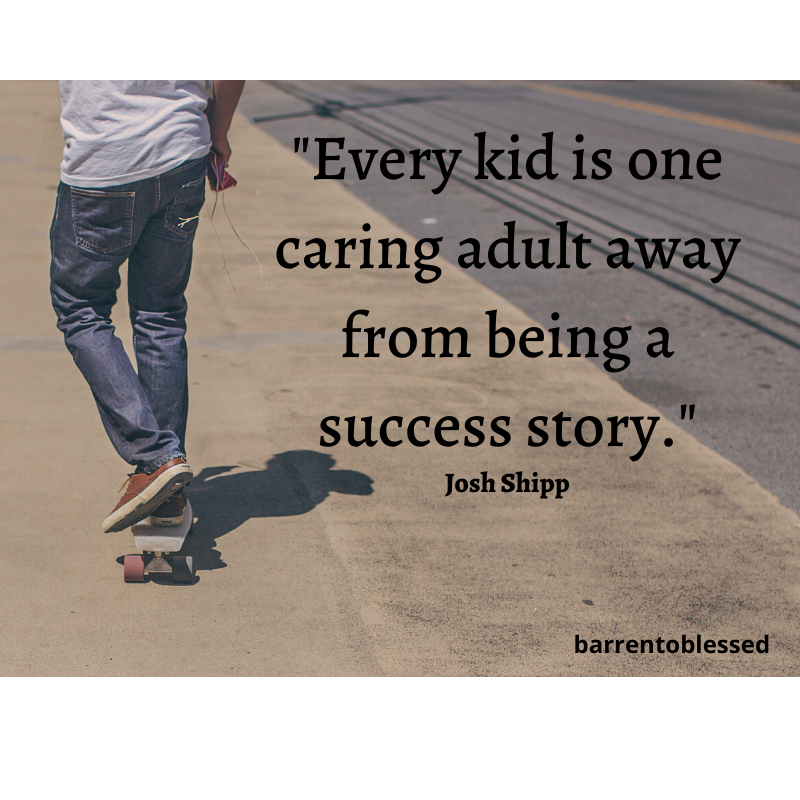 If there isn’t a mentoring program in your community, find out how you can start one. Talk with various agencies who work with at-risk kids and ones in foster care. Consider if your small group at church could provide support. Speak to your schools about what they might need. I am a firm believer that when at-risk youth (in or out of foster care) find connection with at least one adult, their chances of success greatly improve.